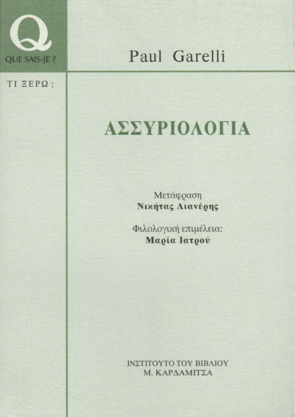 Ασσυριολογία / Paul Gareli ; μετ. Νικήτας Λιανέρης ; φιλολογική επιμέλεια: Μαρία Ιατρού