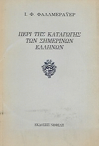 Περί της καταγωγής των σημερινών Ελλήνων / Ιακώβου Φιλίππου Φαλλμεράυερ ; μετ., παρουσ. Κωνσταντίνος Π. Ρωμανός